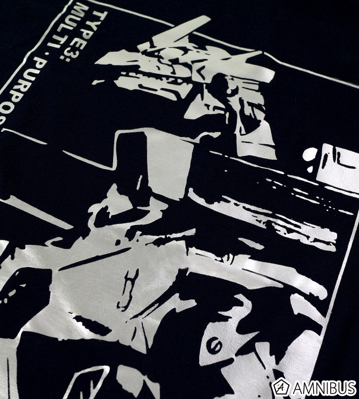 ブラックのTシャツボディに白銀に輝く3式機龍はインパクト大です。