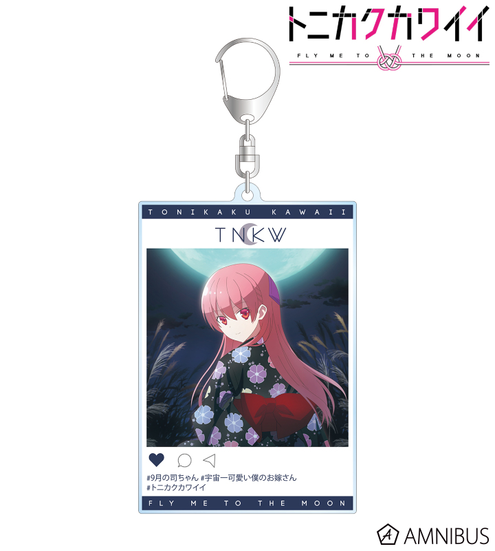 「由崎司プロジェクト お嫁さんギャラリー」9月の描き下ろしイラストの、浴衣姿で縁側に座る司をSNS風のレイアウトでBIGなアクリルキーホルダーに仕上げました。