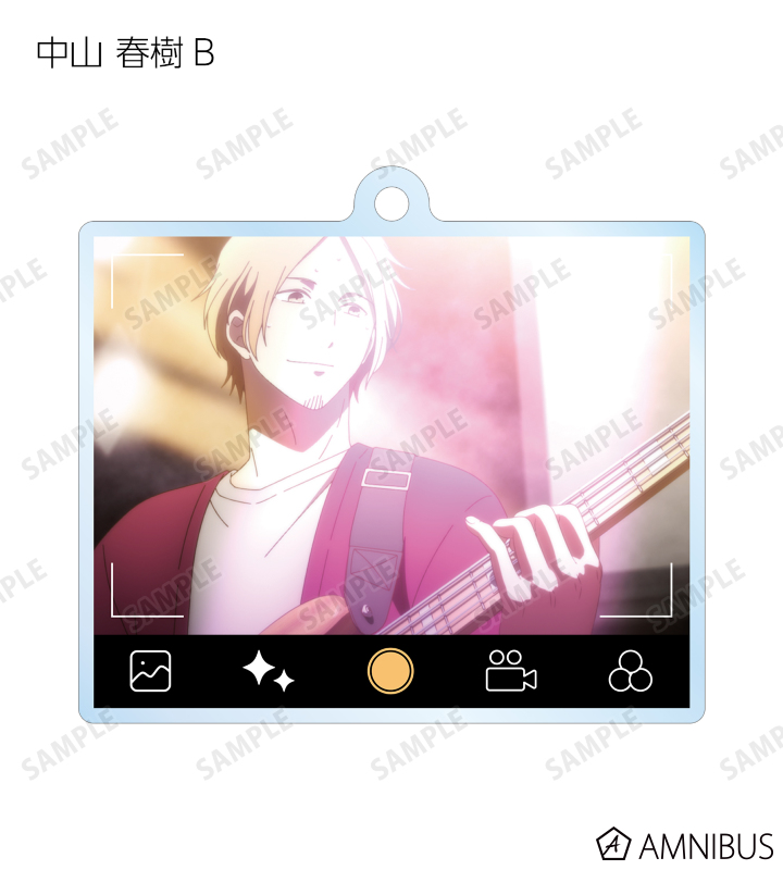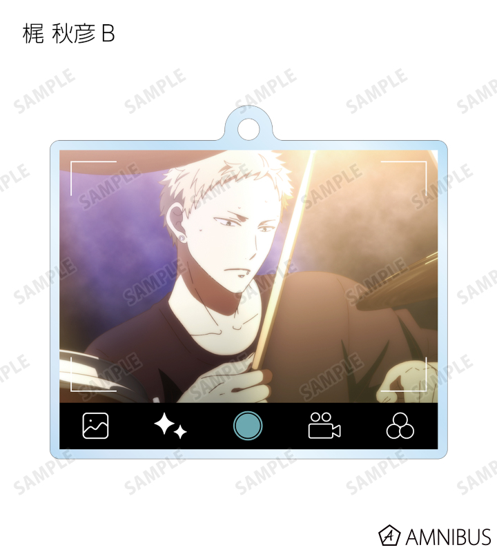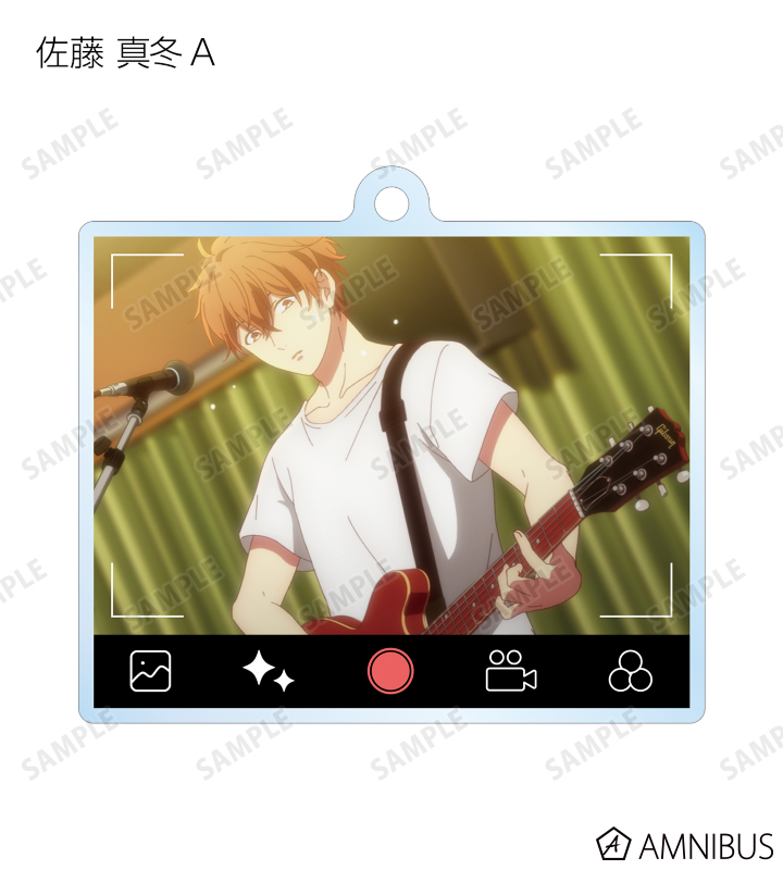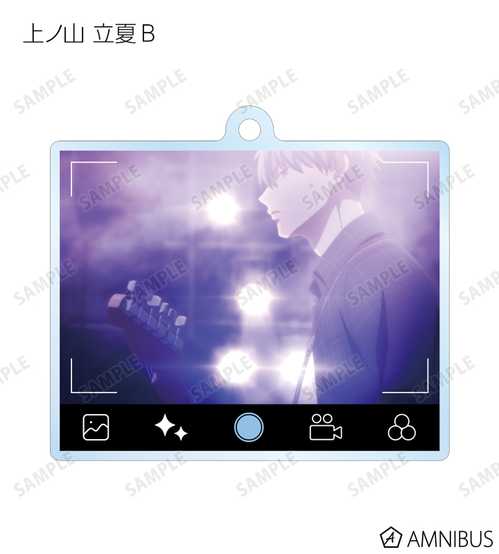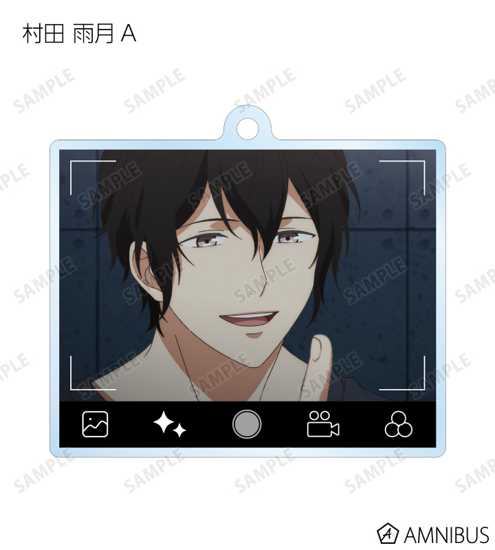 佐藤 真冬、上ノ山 立夏、中山 春樹、梶 秋彦、村田 雨月を写真アプリで撮影している風のレイアウトでアクリルキーホルダーに仕上げました。