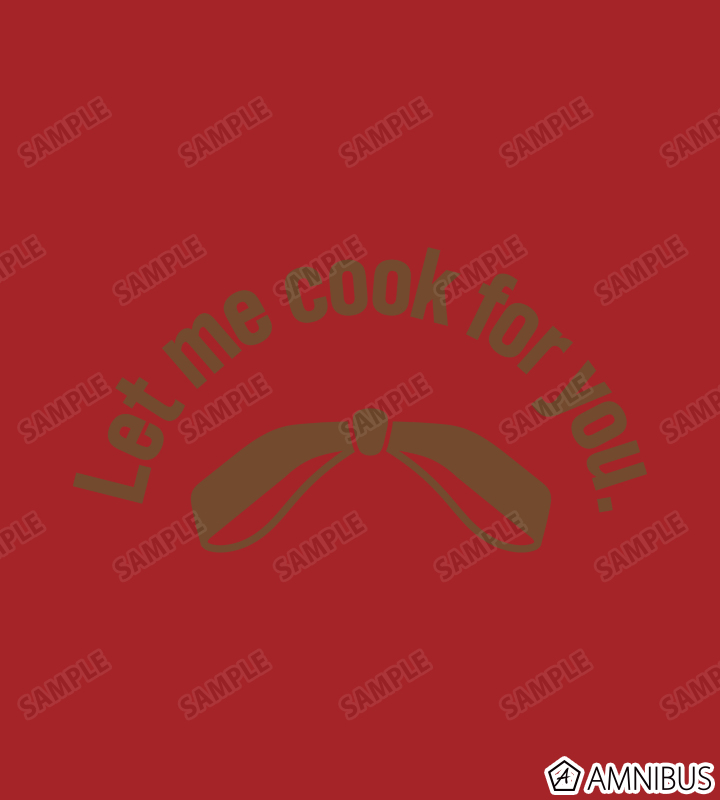 キヨのトレードマークの頭の赤いリボンのモチーフと、キヨがまかないさんになるきっかけとなったセリフ「私...ご飯作ってもいい?」の英訳を合わせてレイアウトしました。