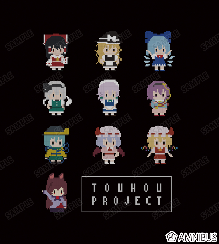 博麗霊夢、霧雨魔理沙、チルノ、魂魄妖夢、十六夜咲夜、古明地さとり、古明地こいし、レミリア・スカーレット、フランドール・スカーレット、今泉影狼をドット絵風に描き起こしたイラストをメインにデザインしました。