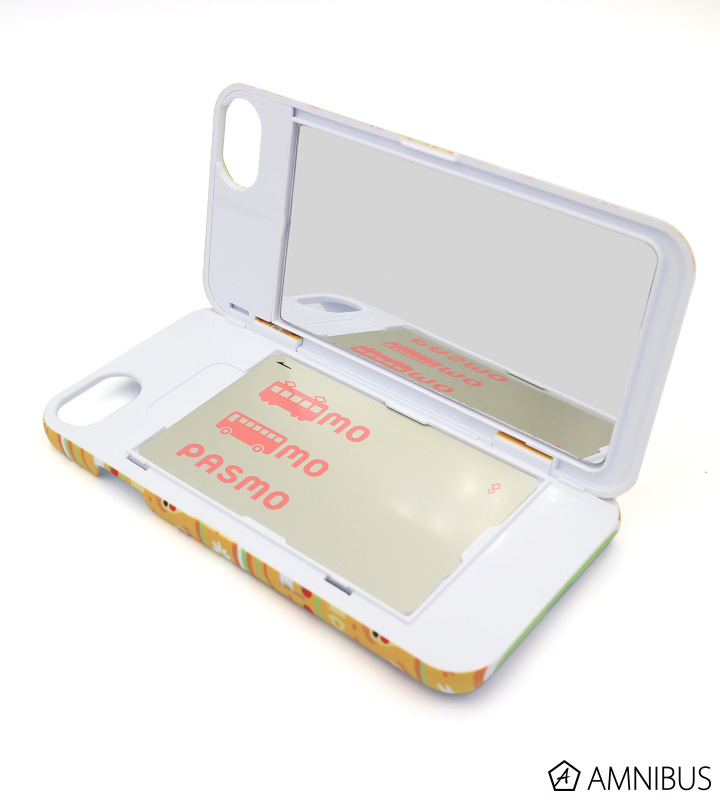 ケース内部にICカードを収納できるホルダーとコンパクトミラーを搭載し、背面を開いて横向きにするとスマホスタンドとしてもご活用いただけます。