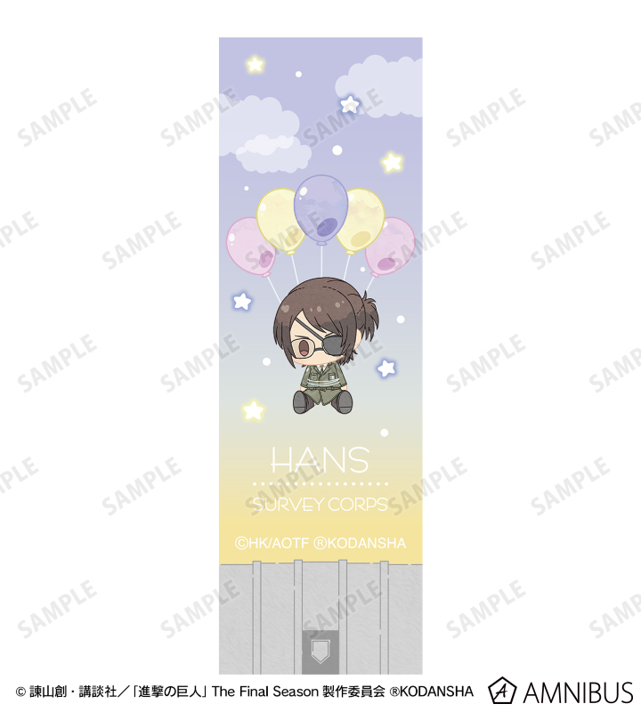 ハンジをお空に風船でぷかぷかと浮いたぬいぐるみをイメージして描き起こしました。