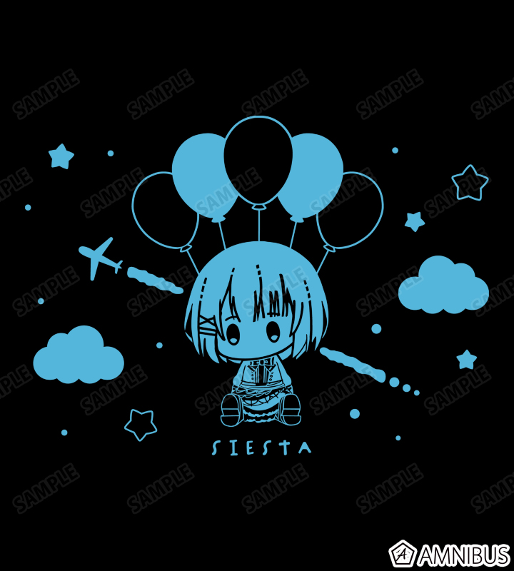 シエスタをお空に風船でぷかぷかと浮いたぬいぐるみをイメージして描き起こしました。