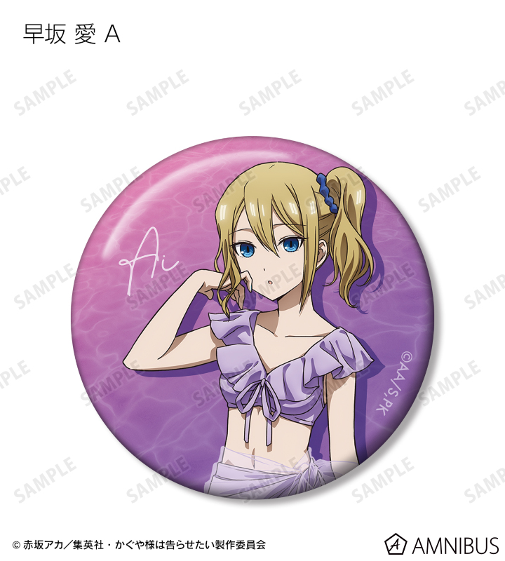 アニメイトで開催された『「かぐや様は泳ぎたい」アニメイトフェア』描き下ろしイラストの四宮かぐや、白銀御行、藤原千花、石上 優、伊井野ミコ、早坂 愛 をメインにデザインし、缶バッジに仕上げました。