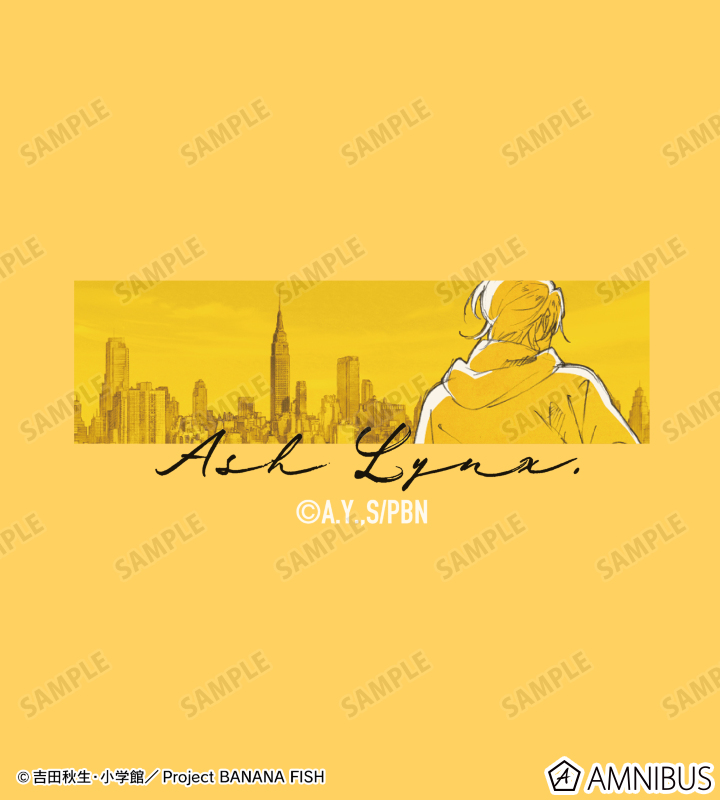 作品カラーのイエローボディに、ニューヨークの街並みとアッシュの後ろ姿をレイアウトしています。