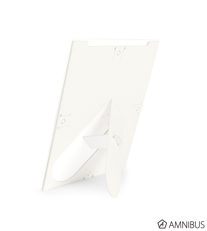 丈夫なマット紙で挟み込み、裏面にスタンドと壁掛け用の穴を搭載しました。