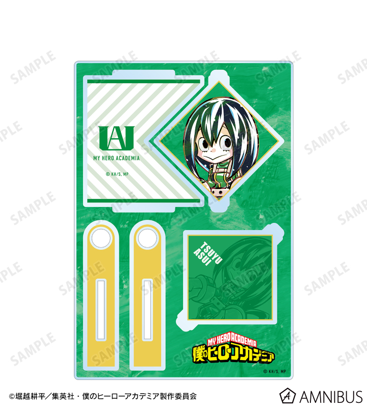 蛙吹梅雨を新たなタッチで魅力的に表現し、キャラクター部分がくるくる回るアクリルスタンドに仕上げました。