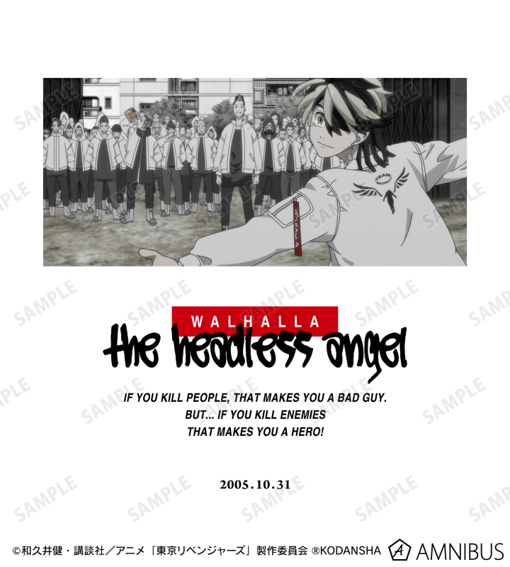 表面には芭流覇羅のマークを、背面には場面写と羽宮 一虎の「”人”を殺すのは”悪者”でも”敵”を殺すのは ”英雄”だ!!」というセリフの英訳を入れてデザインしました。