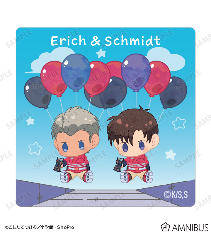 星馬 烈、星馬 豪、鷹羽 リョウ、J、ブレット・アスティア、ミハエル・フリードリヒ・フォン・ヴァイツゼッカー、エーリッヒ・クレーメンス・ルーデンドルフ、シュミット・ファンデルハウゼン・フォン・シューマッハ、カルロ・セレーニをお空に風船でぷかぷかと浮いたぬいぐるみをイメージして描き起こしました。