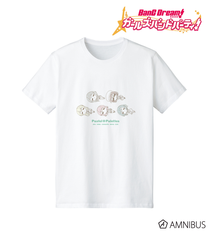丸山 彩、氷川 日菜、白鷺 千聖、大和 麻弥、若宮 イヴがころんと寝ているちびキャラを新たに描き起こし、Tシャツに仕上げました。