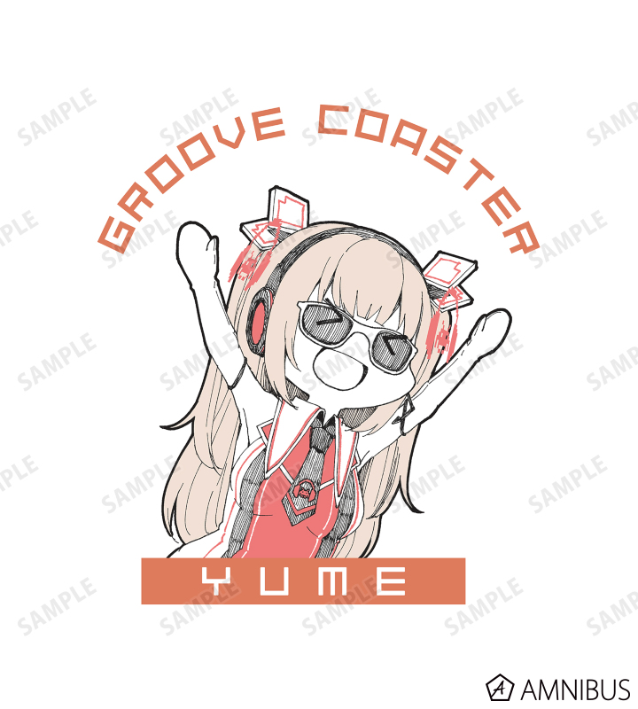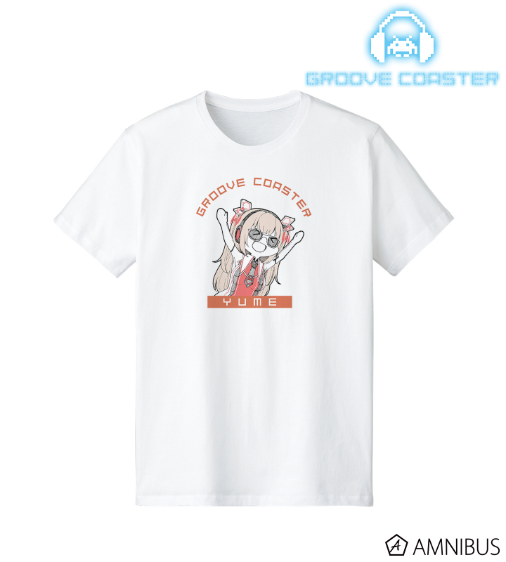ユメと作品タイトル、キャラクター名を組み合わせ、カレッジ風デザインのTシャツに仕上げました。