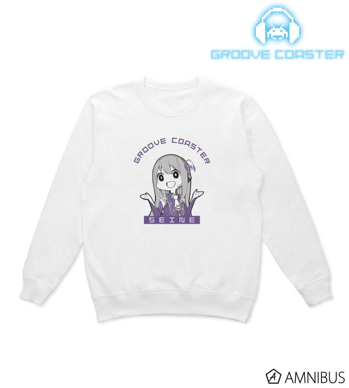 セイネと作品タイトル、キャラクター名を組み合わせ、カレッジ風デザインのトレーナーに仕上げました。