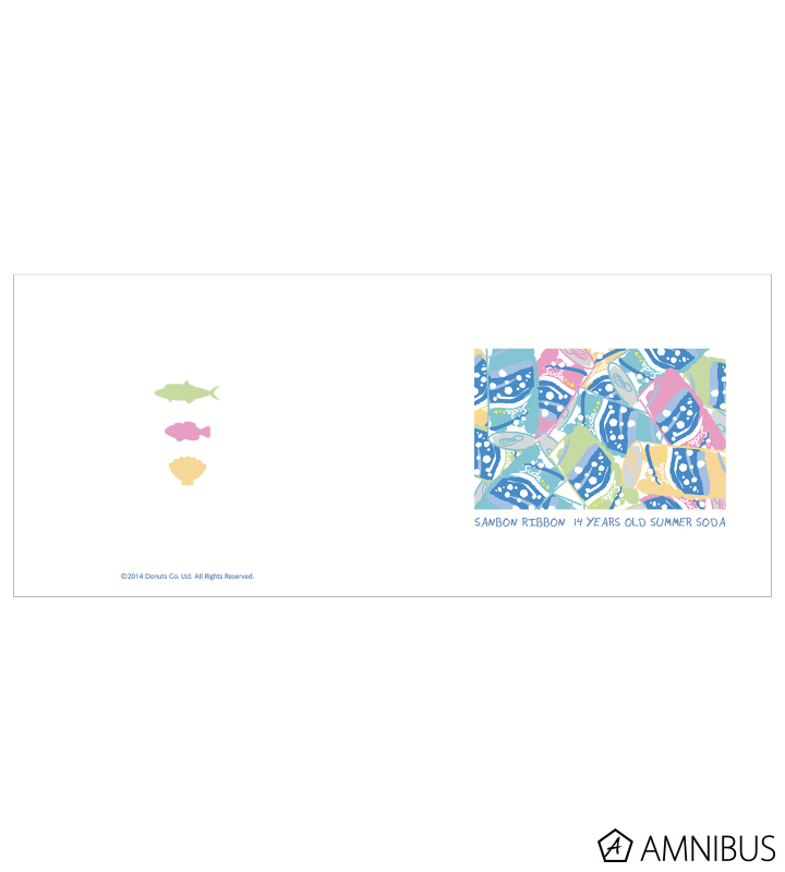 サンボンリボン「14歳のサマーソーダ」をイメージし、サイダー缶や三姉妹の名前をモチーフに組み合わせてデザインしました。