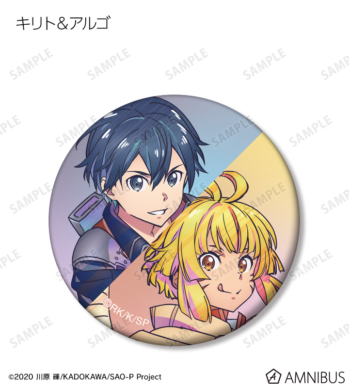 キリト、アスナ、アルゴ、ミトを新たなタッチで魅力的に表現し、マットな手触りの缶バッジに仕上げました。