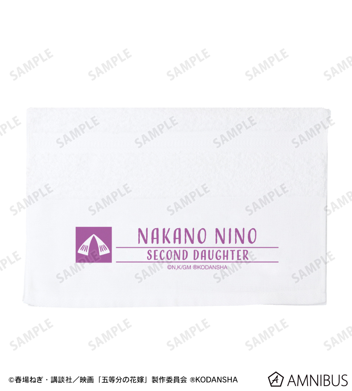 中野二乃の描き下ろしイラストとキャラクターモチーフを粗品タオルに仕上げました。