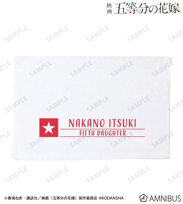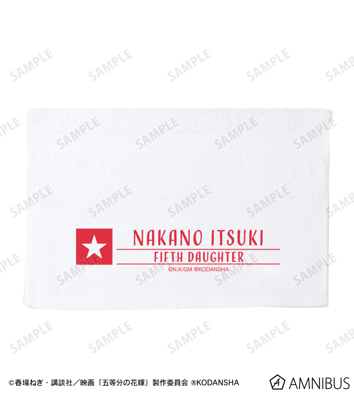 中野五月の描き下ろしイラストとキャラクターモチーフを粗品タオルに仕上げました。