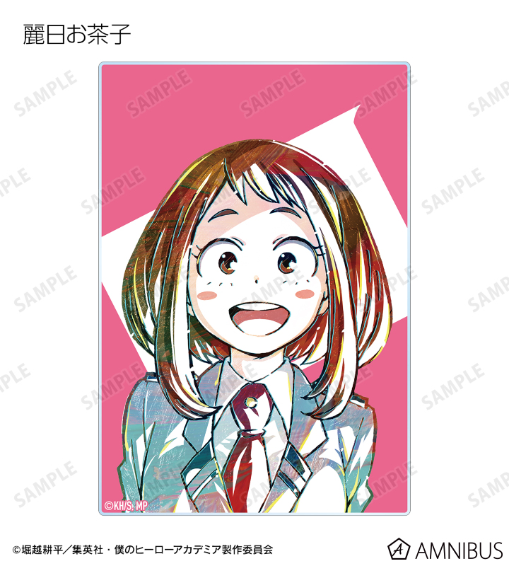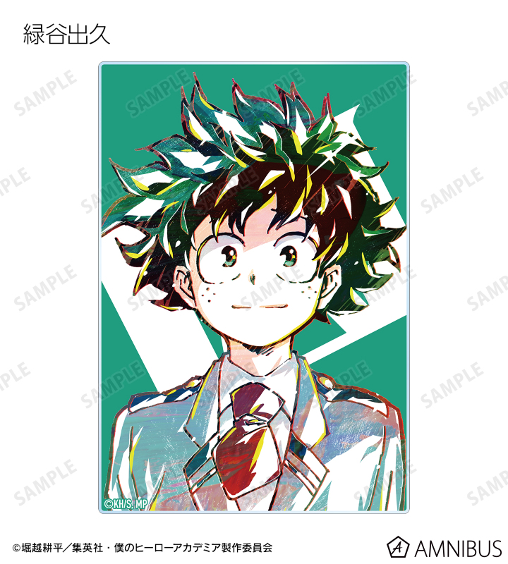 緑谷出久、爆豪勝己、麗日お茶子、轟焦凍、切島鋭児郎、上鳴電気、耳郎響香、相澤消太を新たなタッチで魅力的に表現し、アクリルカードに仕上げました。