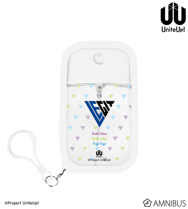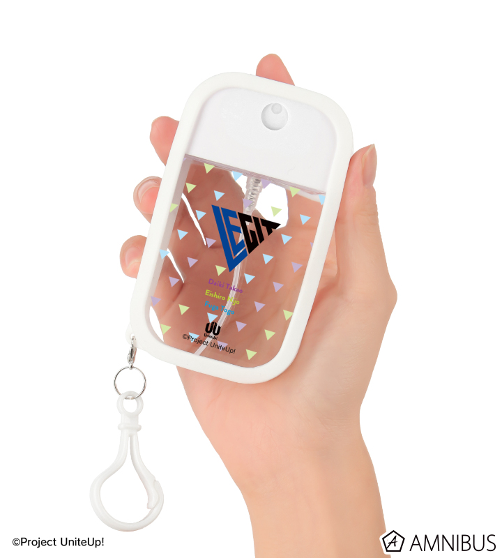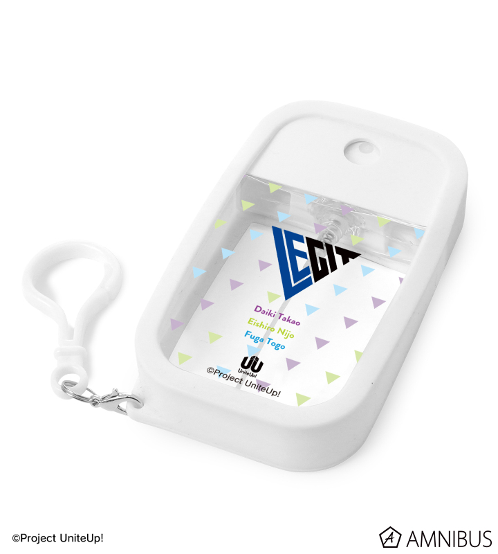 LEGITのユニットロゴと、高尾大毅、二条瑛士郎、東郷楓雅の名前の英字表記をシリコンカバー付きスプレーボトルに仕上げました。