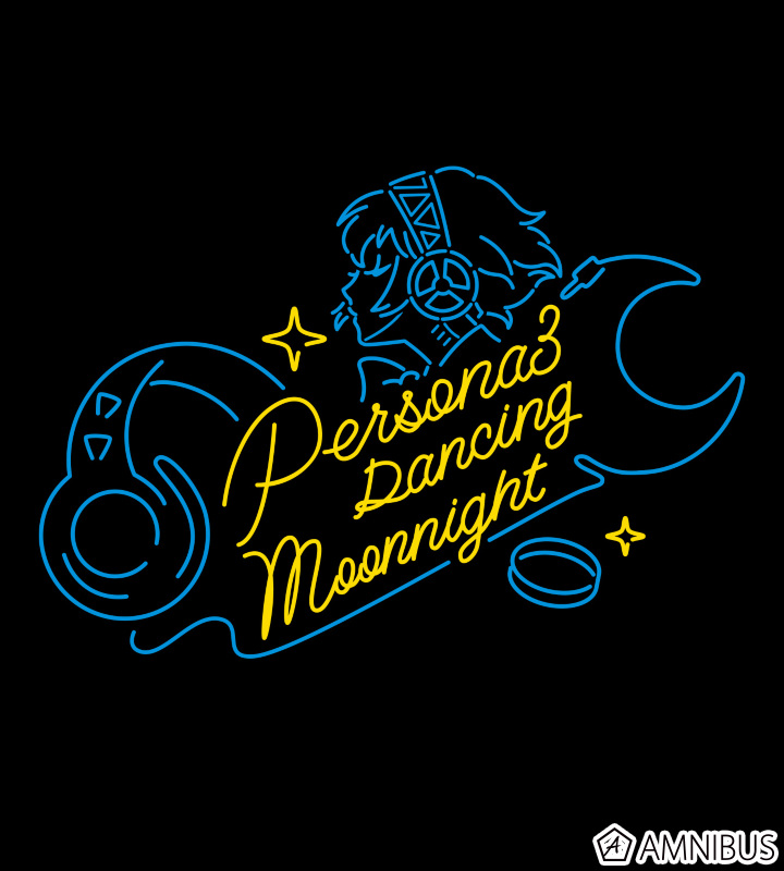 アイギスやリストバンド、月、ヘッドホンなどのモチーフを組み合わせ、ネオン風に仕上げてバックプリントを施しました。