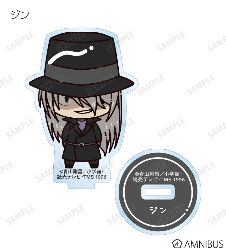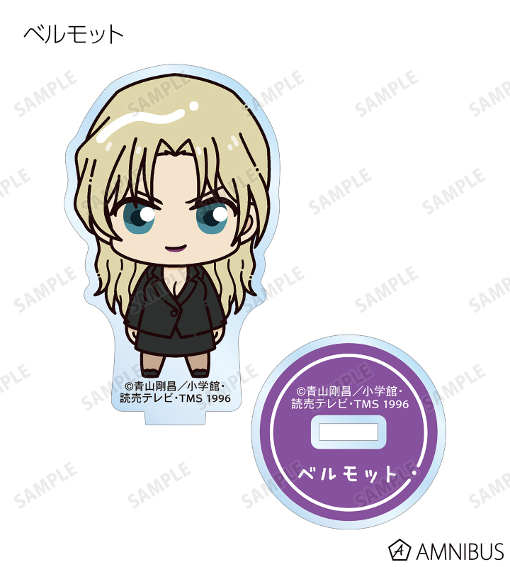 江戸川コナン、工藤新一、毛利蘭、灰原哀、赤井秀一、沖矢昴、ジン、ウォッカ、ベルモット、バーボンがちょこんと立っているちびキャラを新たに描き起こし、アクリルスタンドに仕上げました。