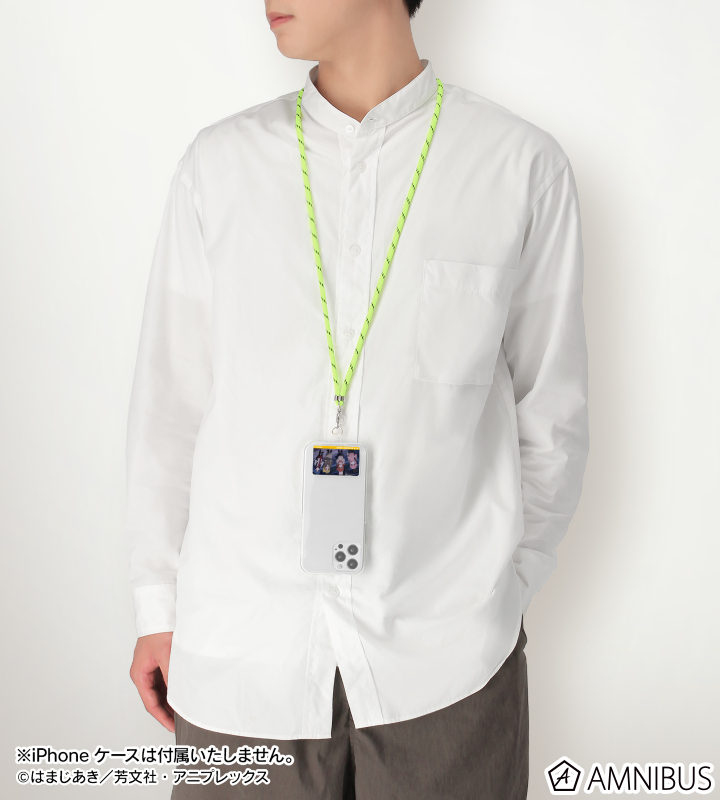 スマートフォン本体とケースの間にイラスト部分を挟み、充電コネクト部分からストラップを取り付るので、様々なケースに対応できるアイテムとなります。