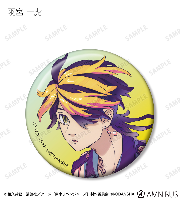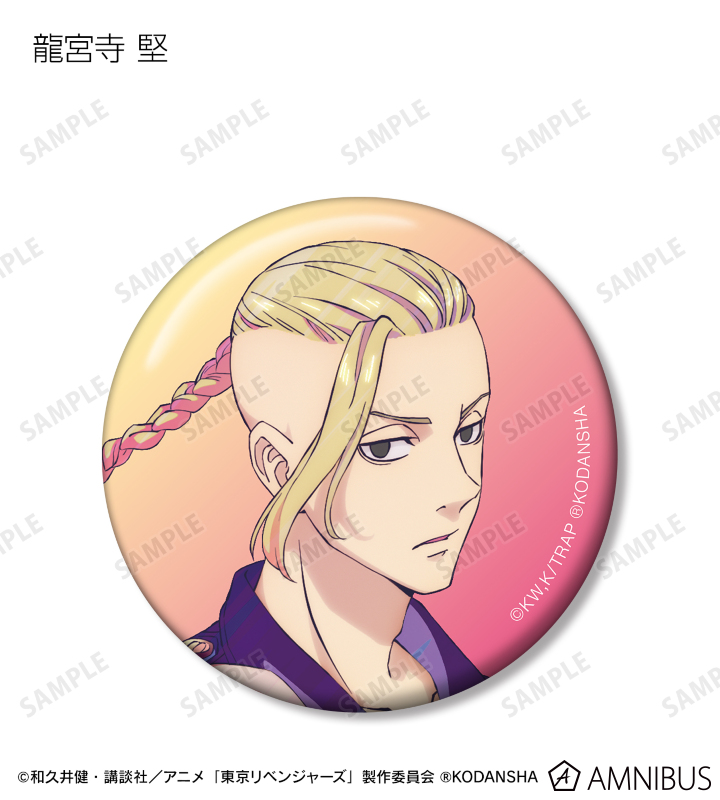 花垣 武道、佐野 万次郎、龍宮寺 堅、場地 圭介、松野 千冬、三ツ谷 隆、羽宮 一虎を新たなタッチで魅力的に表現し、缶バッジに仕上げました。