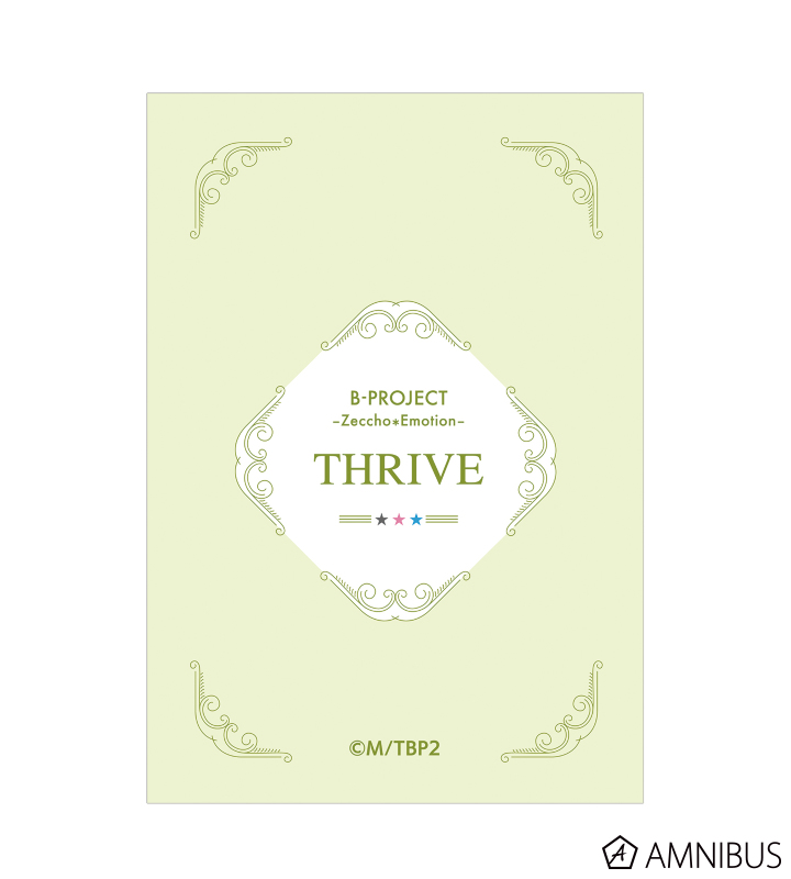 「THRIVE」の文字や作品タイトルをクラシックなフレームと組み合わせ、グループをイメージしたパステル調のカラーリングに仕上げました。