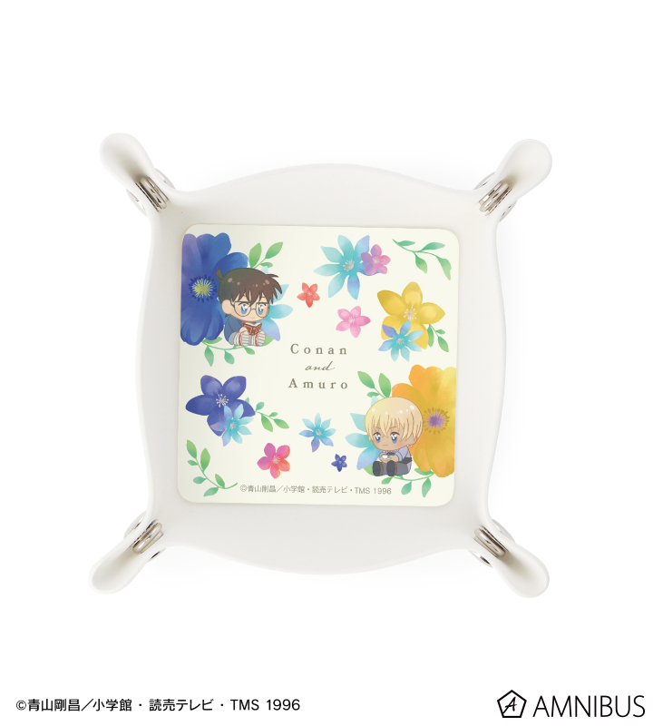 江戸川コナン、安室透のイラストをボタニカルデザインに落とし込んで繊細なタッチで新たに描き起こし、PUレザーマルチトレーに仕上げました。