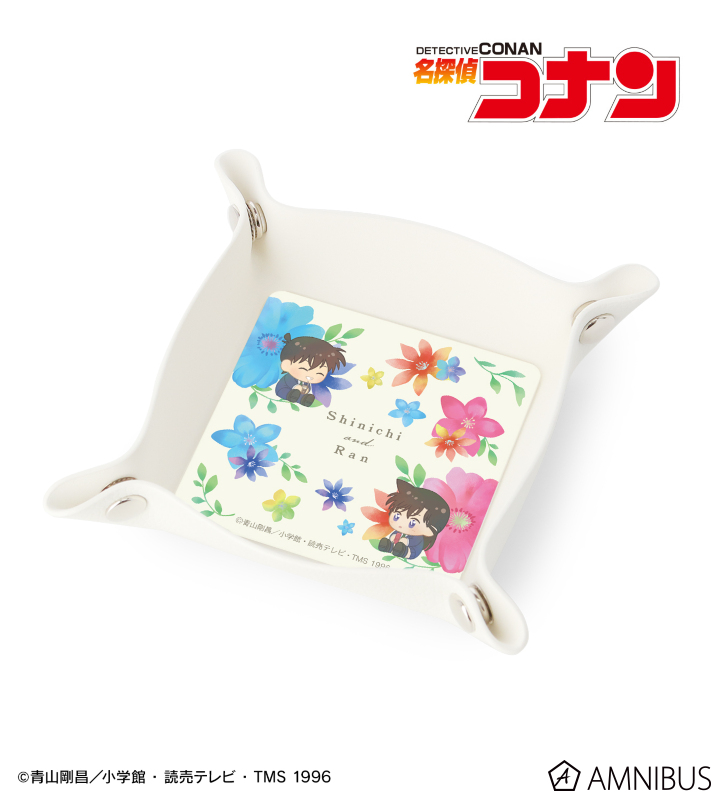 工藤新一、毛利蘭のイラストをボタニカルデザインに落とし込んで繊細なタッチで新たに描き起こし、PUレザーマルチトレーに仕上げました。