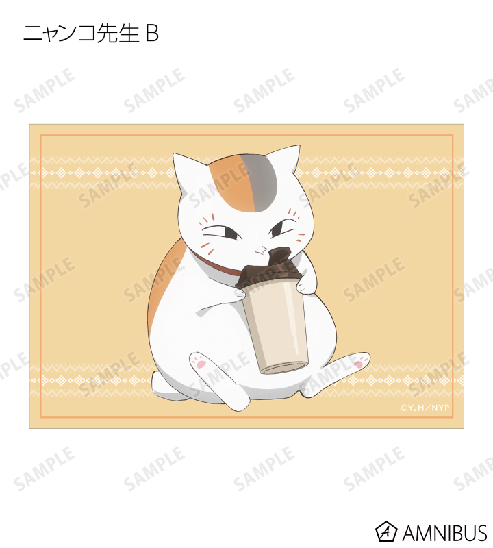 夏目貴志、ニャンコ先生、名取周一、田沼要、的場静司の描き下ろしイラストをブロマイドに仕上げました。
