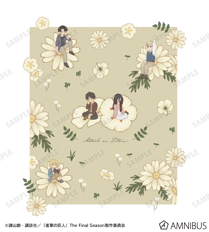 エレン、ミカサ、アルミン、エルヴィン、リヴァイの幼少期のイラストをボタニカルデザインに落とし込んで繊細なタッチで新たに描き起こし、Tシャツに仕上げました。