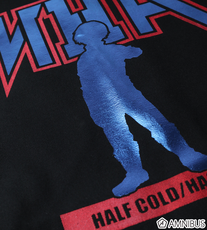 轟焦凍のシルエット、個性名などを使用したデザインに、青と赤の箔プリントを施しました。