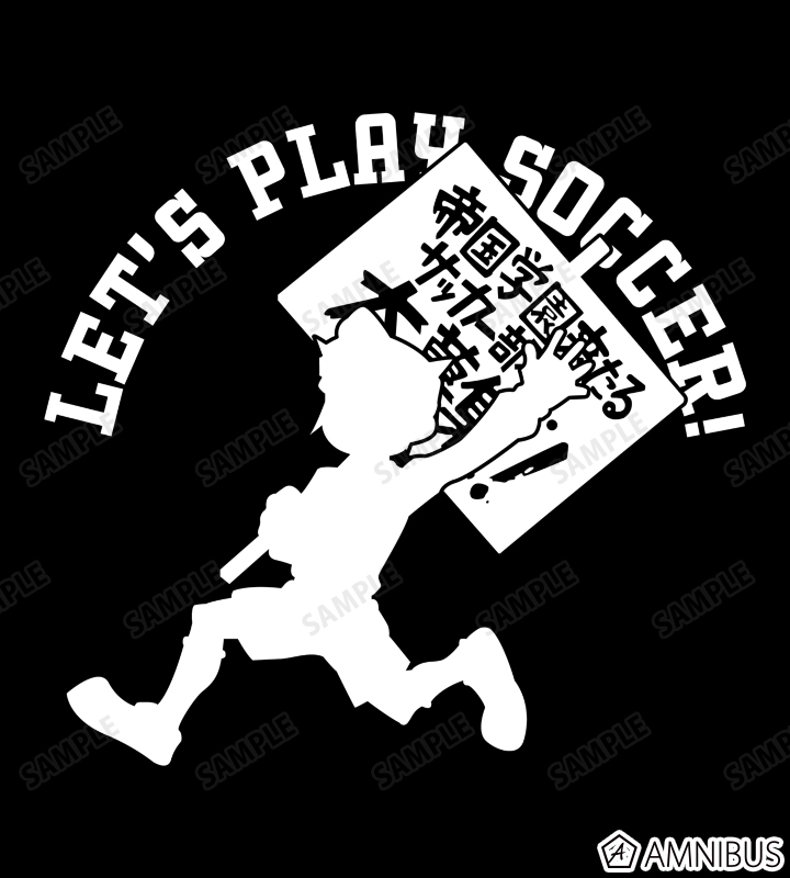 円堂守のシルエット、「サッカーやろうぜ!」の英字をカレッジ風にデザインしました。