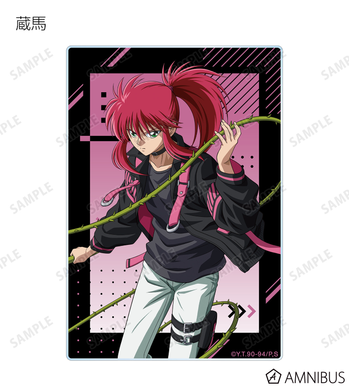 浦飯幽助、桑原和真、飛影、蔵馬、妖狐蔵馬、仙水忍、樹、刃霧要の描き下ろしイラストをアクリルカードに仕上げました。