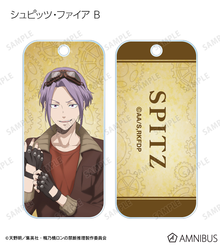鴨乃橋ロン、一色都々丸、雨宮、シュピッツ・ファイア、翡翠臣疾の描き下ろしイラストをアクリルキータグに仕上げました。