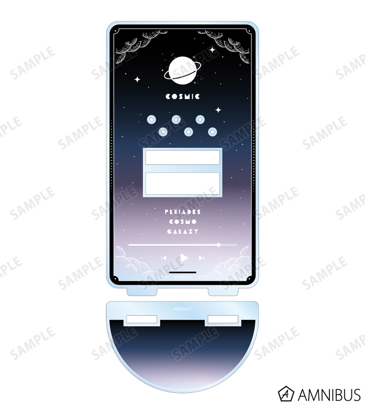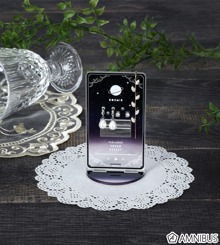 キャラクターの名前にもなっている星と宇宙をモチーフにしたデザインのアクリルアクセサリースタンドに仕上げました。