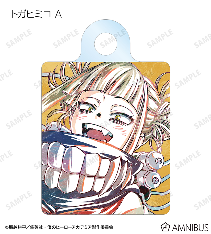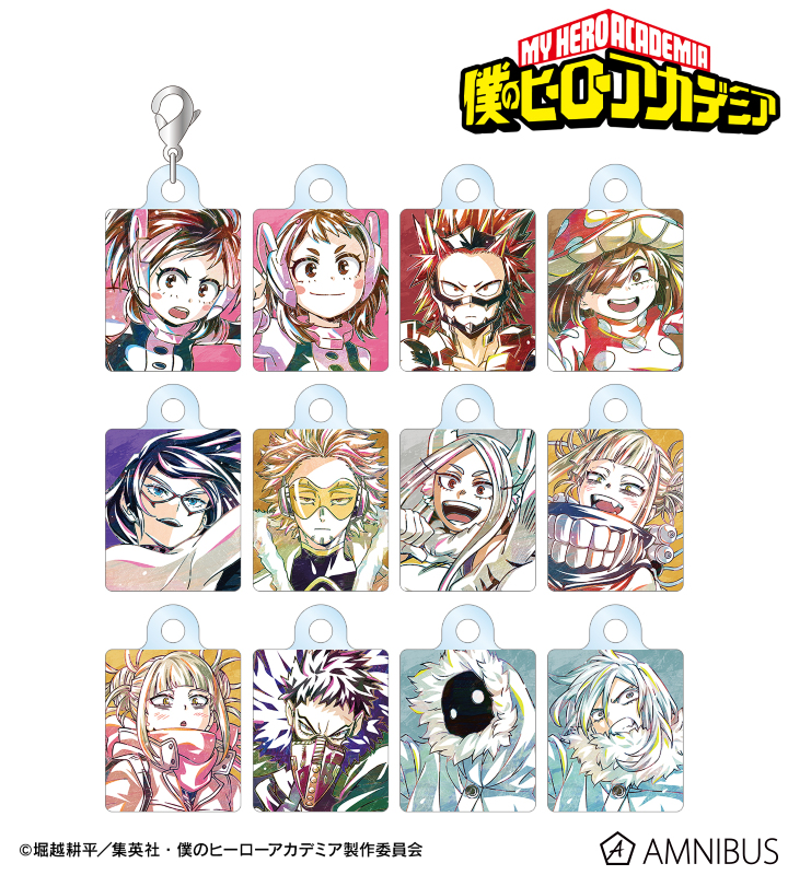 麗日お茶子、切島鋭児郎、小森希乃子、ミッドナイト、ホークス、ミルコ、トガヒミコ、オーバーホール、外典のビジュアルを新たなタッチで魅力的に表現し、ダイカットのアクリルチャームに仕上げました。