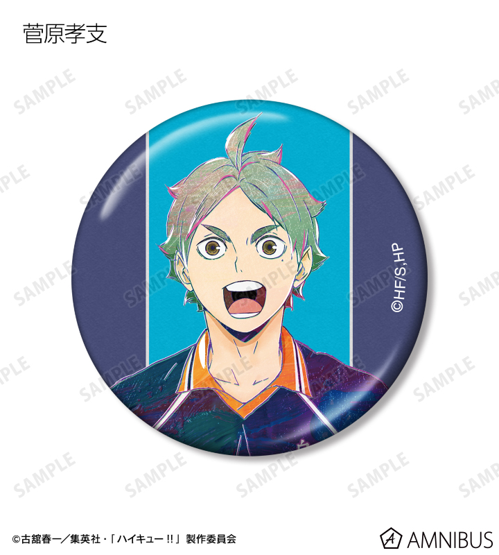 日向翔陽、影山飛雄、月島 蛍、山口 忠、西谷 夕、田中龍之介、澤村大地、菅原孝支、東峰 旭のビジュアルを新たなタッチで魅力的に表現し、メタリック仕様の缶バッジに仕上げました。