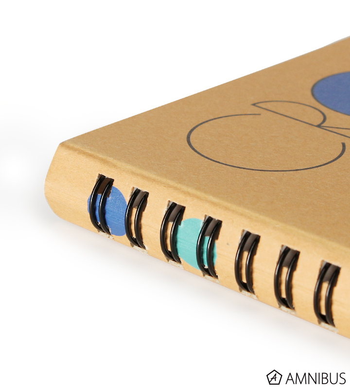 表紙は丈夫でありながら丸められるしなやかさを持ち、リング部分は鞄の中でもワイヤーが絡まないS.C.綴じ製本で仕上げています。