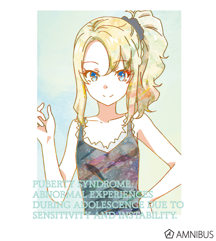 スクエア状にフレーミングし、作品タイトルと組み合わせてキャラクターをイメージしたカラーリングで仕上げました。