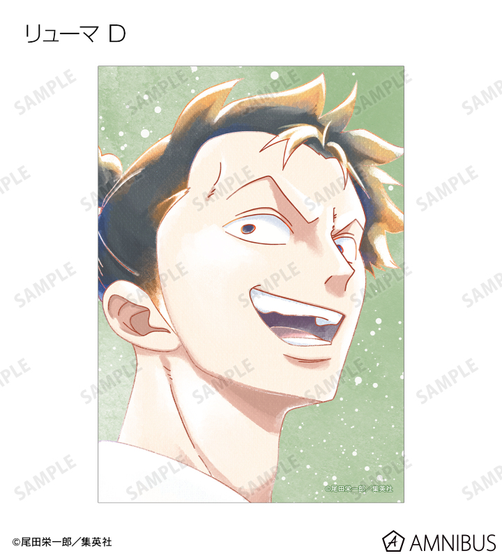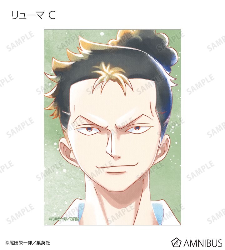 リューマ、フレア、シラノのイラストを新たなタッチで魅力的に表現し、ブロマイドに仕上げました。