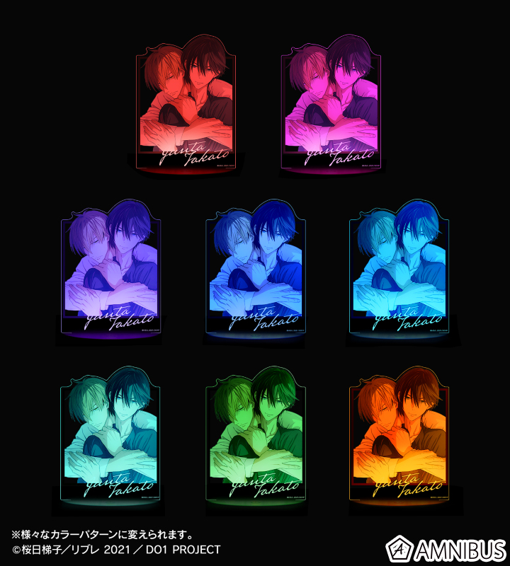 東谷准太、西條高人のイラストをライトアップするアクリルスタンドに仕上げました。