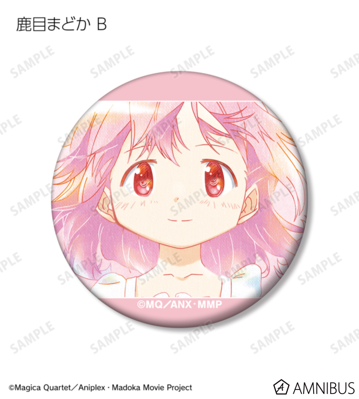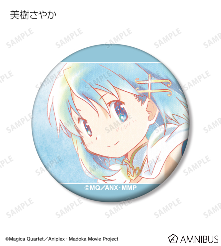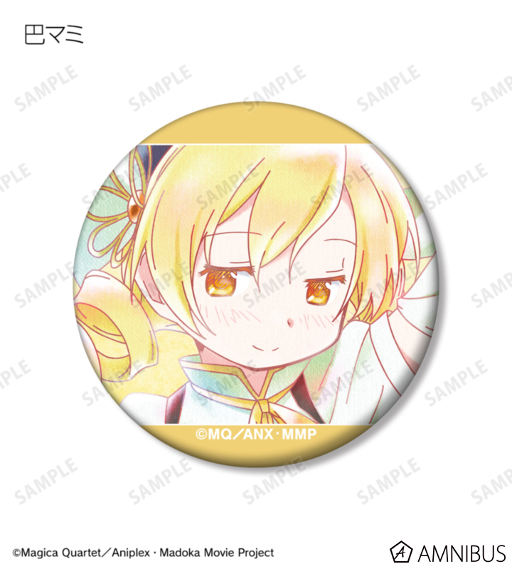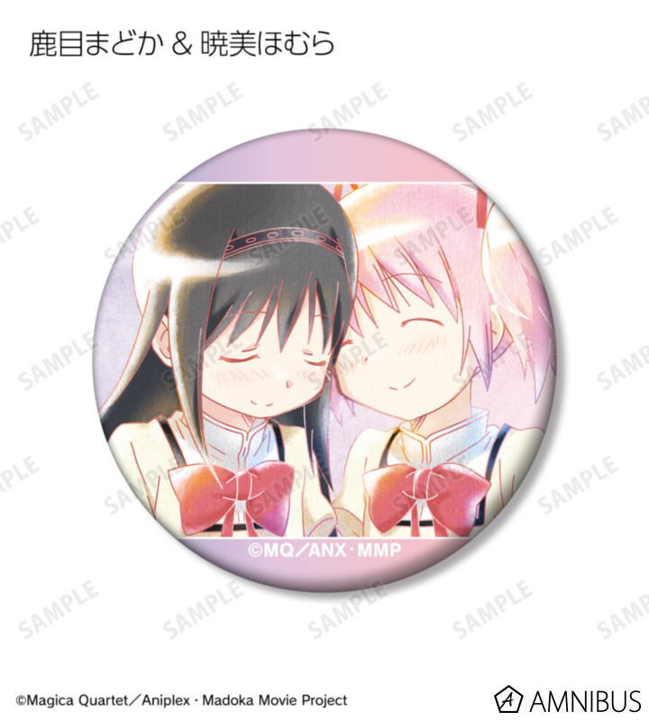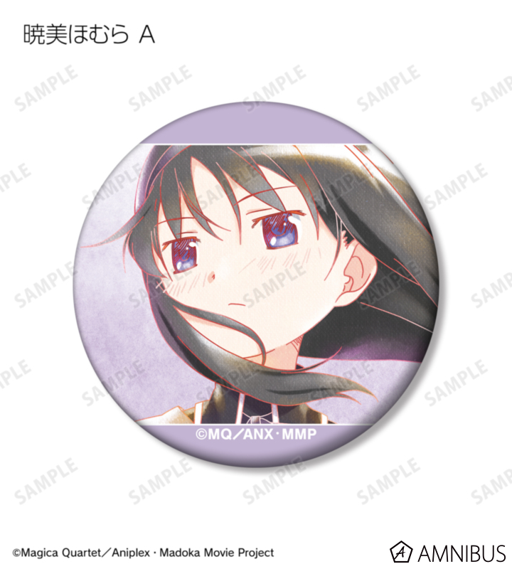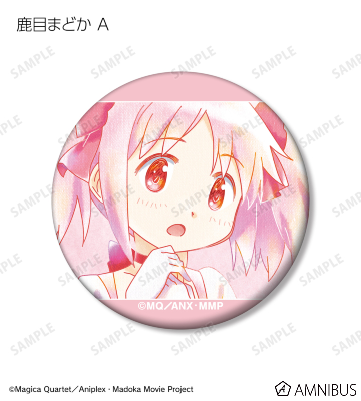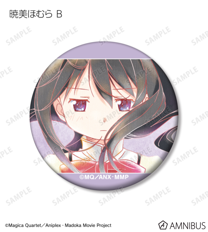 鹿目まどか、暁美ほむら、巴マミ、美樹さやか、佐倉杏子のイラストを水彩調のテイストで表現し、マットな手触りの缶バッジに仕上げました。