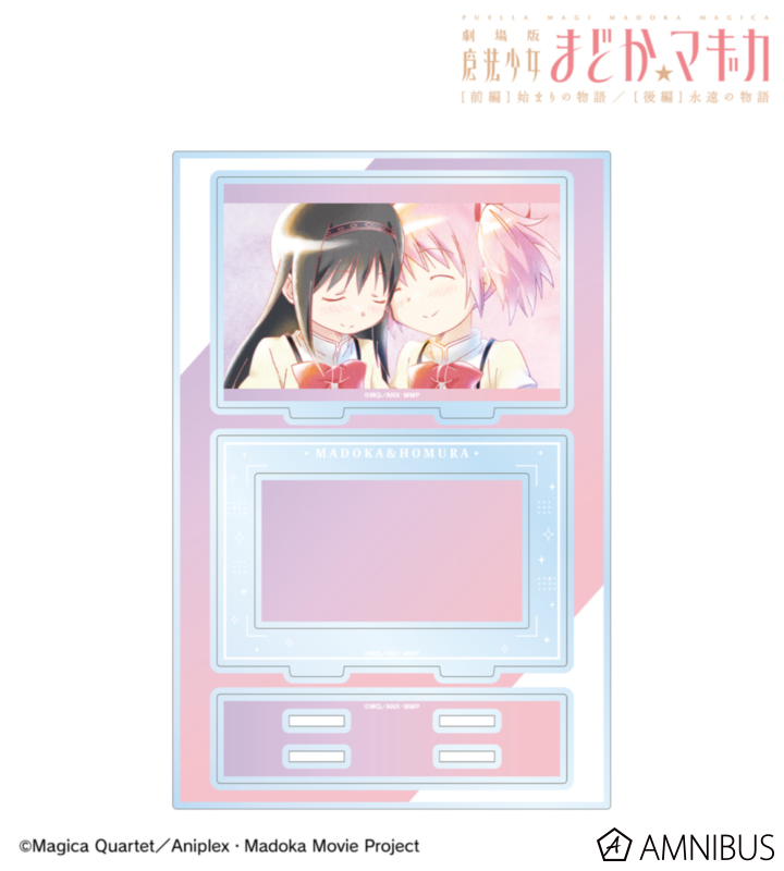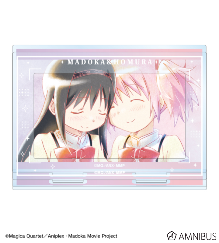 鹿目まどか、暁美ほむらのイラストを水彩調のテイストで表現し、パーツ付きのBIGなアクリルスタンドに仕上げました。