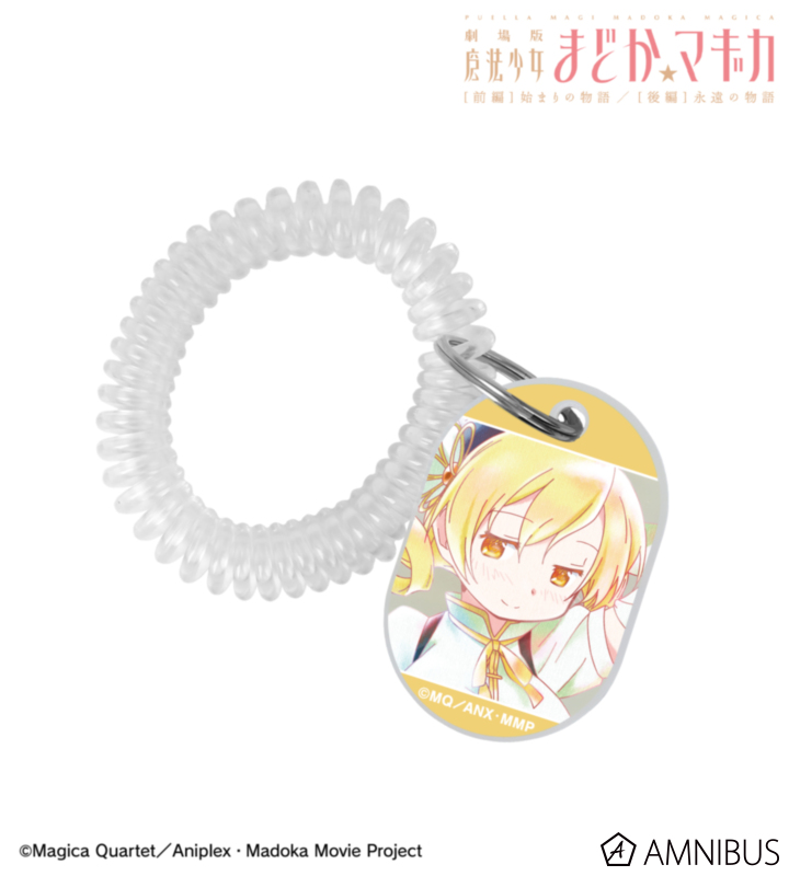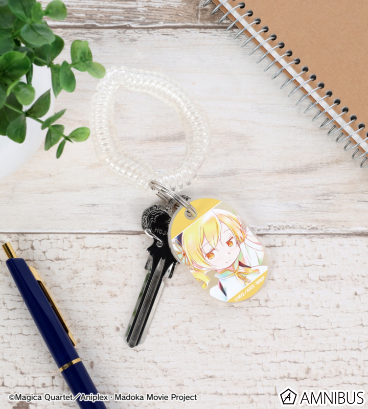 巴マミのイラストを水彩調のテイストで表現し、ロッカーのキータグをイメージしたアクリルキーホルダーに仕上げました。