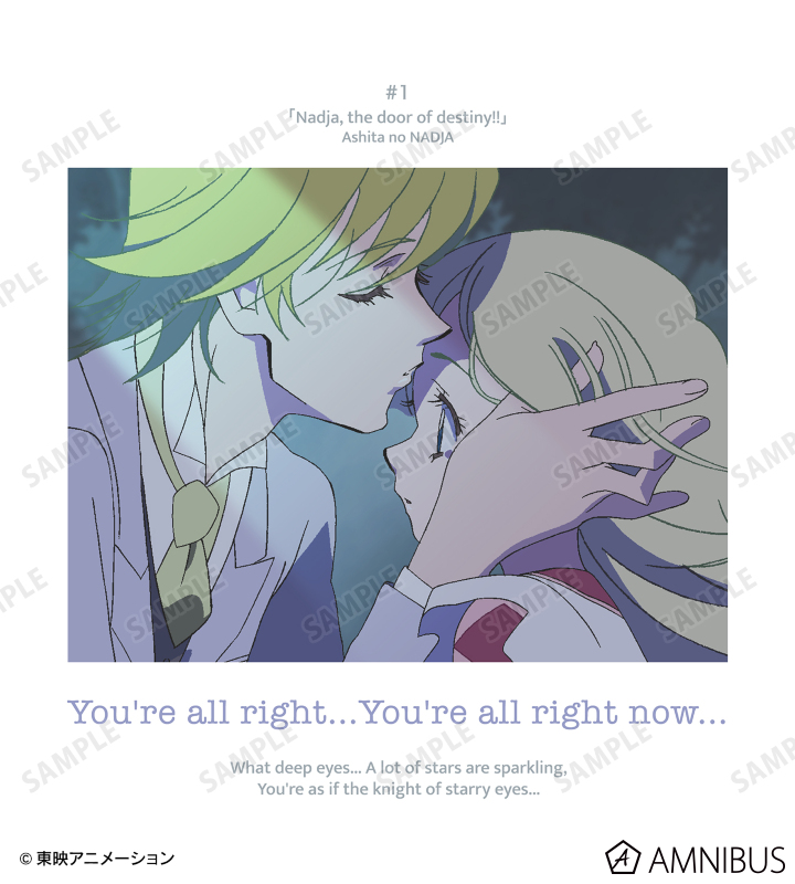ナージャとフランシスの出会いの名シーンを大きく配置し、フランシスの「大丈夫・・・・もう大丈夫・・・・・」のセリフとナージャの心の声を英訳したものをデザインしております。