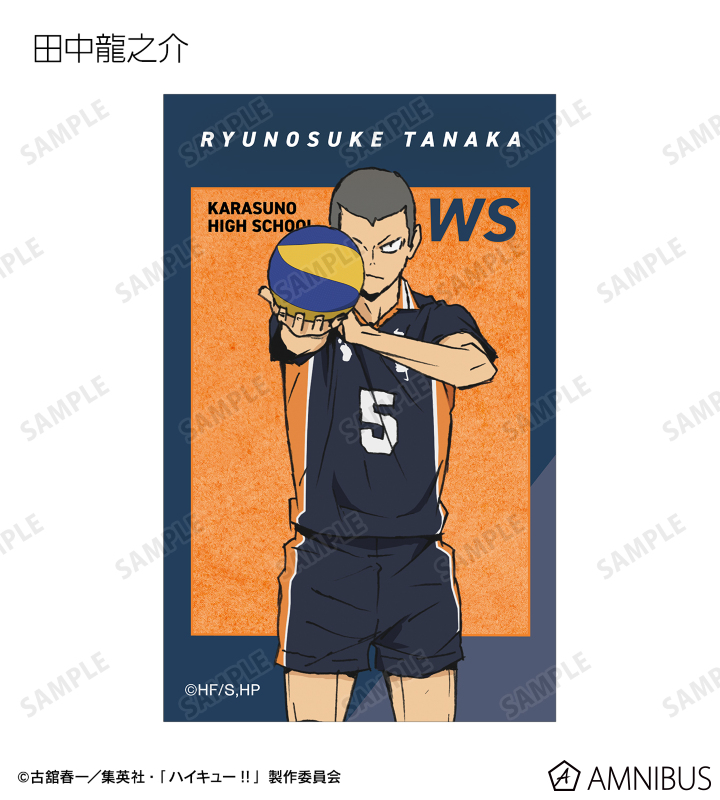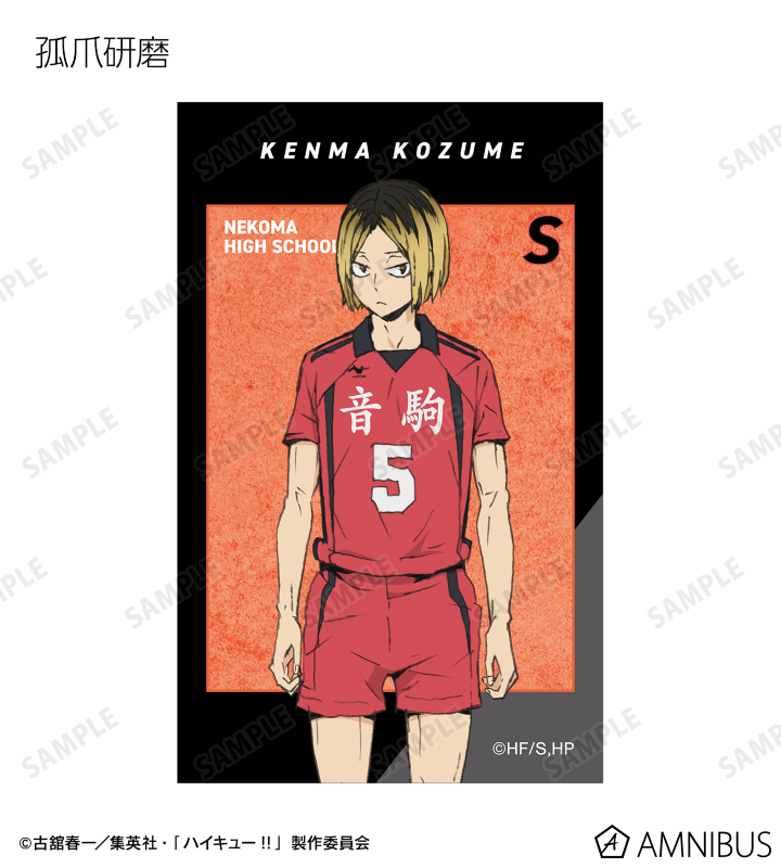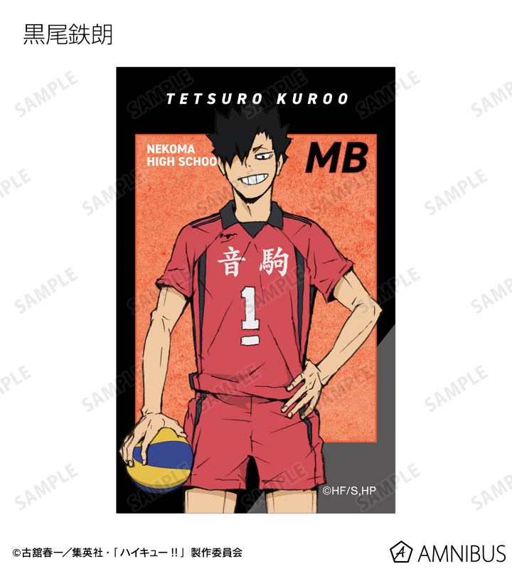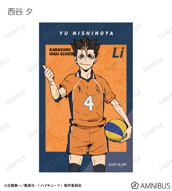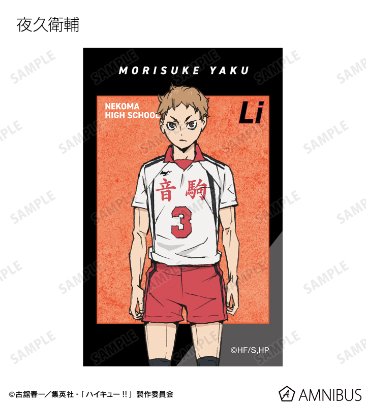 烏野高校の日向翔陽、影山飛雄、月島 蛍、山口 忠、西谷 夕、田中龍之介、澤村大地、菅原孝支、東峰 旭と音駒高校の孤爪研磨、黒尾鉄朗、夜久衛輔、灰羽リエーフのビジュアルをビジュアルカードに仕上げました。