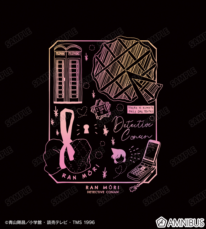 毛利蘭にまつわる描き起こしモチーフ、キャラクター名、作品名、作中台詞の英字をパーカーに仕上げました。