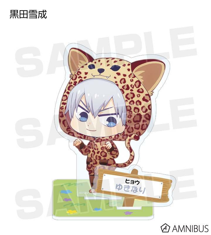 デフォルメに描き起こした小野田 坂道、鳴子 章吉、青八木 一、金城 真護、葦木場 拓斗、黒田 雪成、銅橋 正清、東堂 尽八、新開 隼人、岸神 小鞠のちびキャラと、動物名と名前がプリントされた看板を組み合わせたデザインに仕上げました。